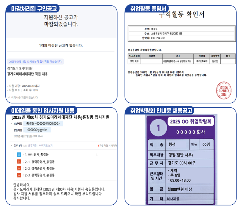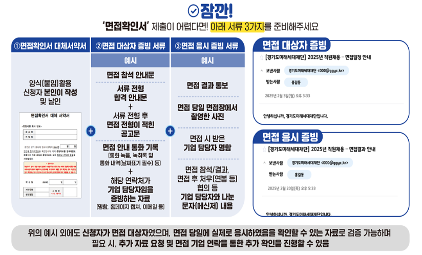 | 면접확인서 또는 대체서약서 | 면접 사실 입증 자료 (이메일, 문자, 명함 등) |