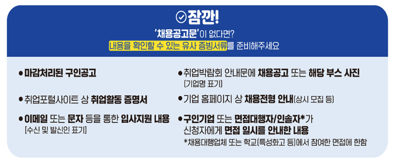 ※ 모든 서류는 온라인 제출 가능하며, 면접확인서는 기업 자체 양식도 허용돼요.