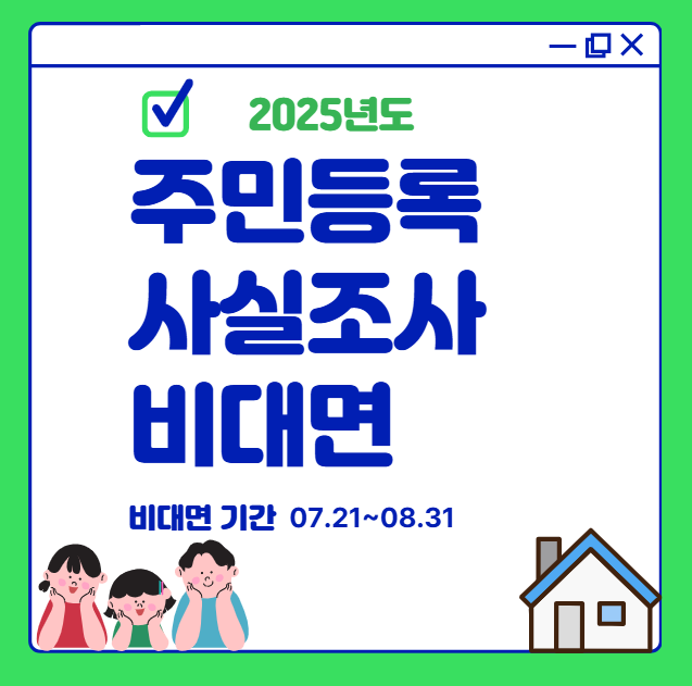 2025년 주민등록 사실조사가 시작되었습니다. 과태료를 줄이고 정확한 정보를 유지할 수 있는 기회, 놓치지 마세요! 비대면으로 간편하게 참여할 수 있는 방법도 있으니 지금 바로 확인해 보세요