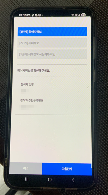 본인 인증이 끝마치면 (본인)참여자 정보를 확인을 합니다.