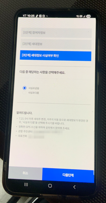 📌 7월 21일 0시 이후 세대주 변경, 거주지 이동 등으로 세대정보가 변경된 경우 '사실과 다름'을 선택하시면 됩니다.