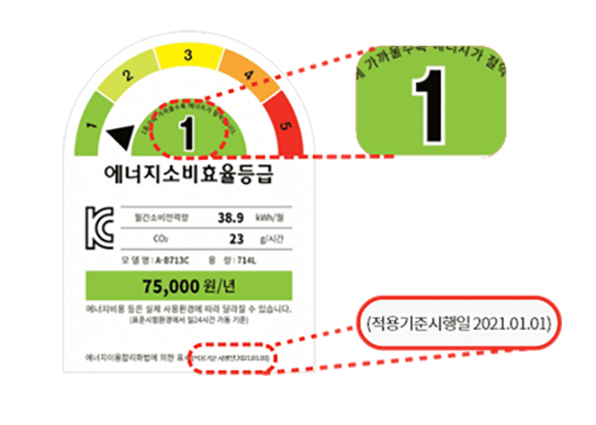 📌에너지 소비효율 소비등급 라벨 예시
