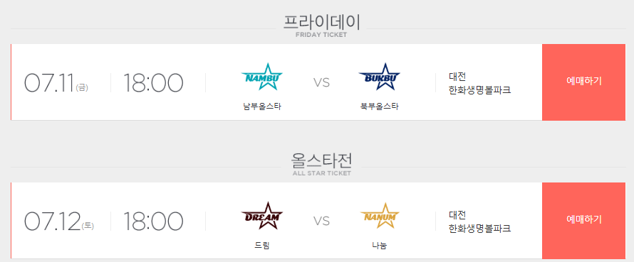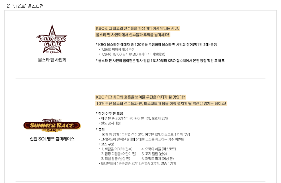 2. KBO 올스타 프라이데이 및 올스타전은 모바일티켓으로만 운영합니다.